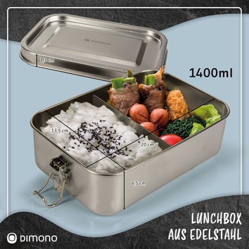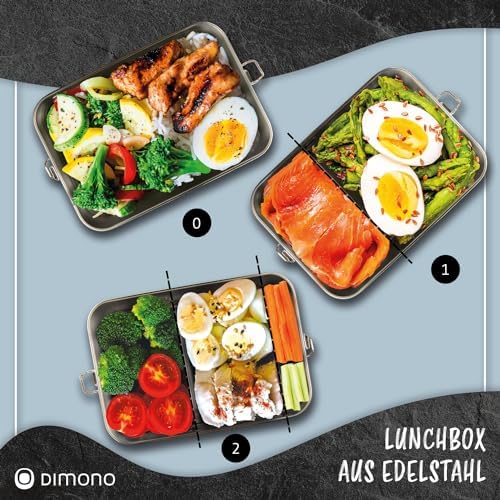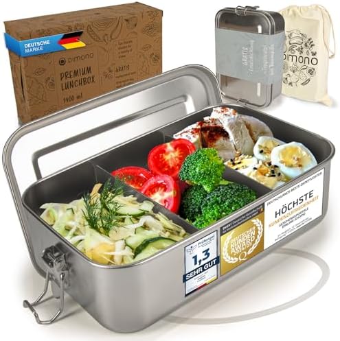 Die Dimono Lunchbox überzeugt durch ihre erstklassige Qualität und Langlebigkeit. Der robuste Edelstahlkörper sorgt nicht nur für ein ansprechendes Design, sondern auch für eine ausgezeichnete Funktionalität. Jedes Detail, von den präzisen Dichtungen bis zu den kraftvollen Schwenkverschlüssen, wurde sorgfältig ausgewählt, um eine herausragende Benutzererfahrung zu gewährleisten.