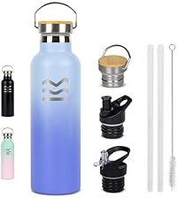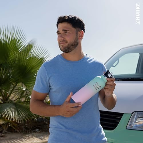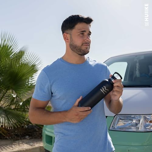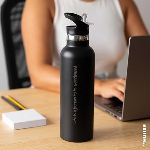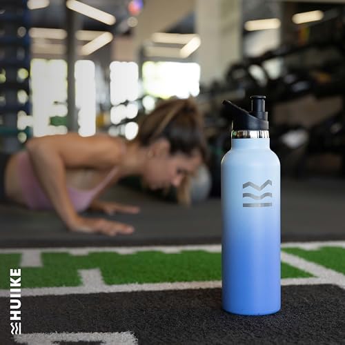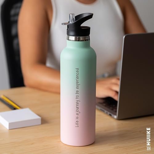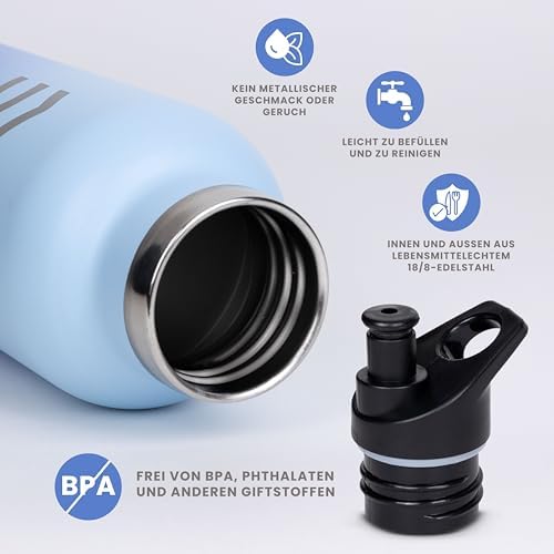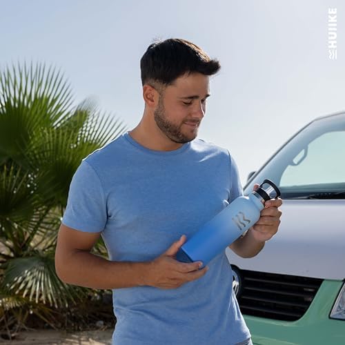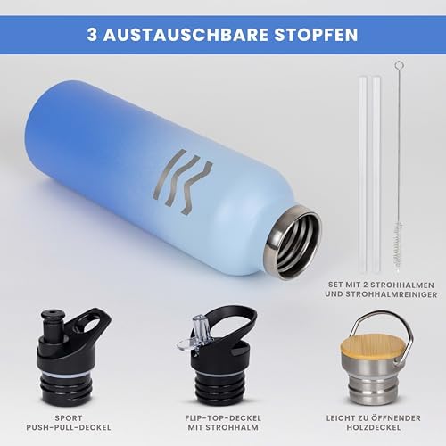 HUIIKE Edelstahl Trinkflasche 750ml Blau | Isolierte Auslaufsichere Thermosflasche mit Strohhalm für Abenteuer