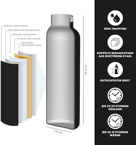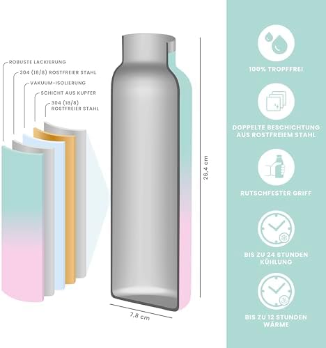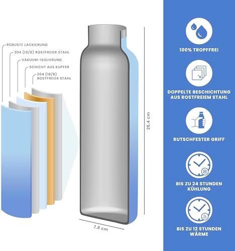 - Kompakte Größe: Mit einem Durchmesser von 7,8 cm und einer Höhe von 26,4 cm ist die Flasche ideal für jede Tasche oder den Rucksack.