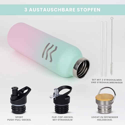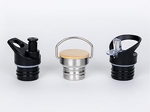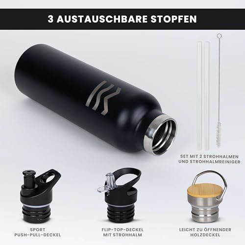 - Vielseitige Deckel: Inklusive drei auslaufsicheren Deckeln: Holzdeckel, Klappdeckel mit Strohhalm und Sportdeckel für individuelle Nutzung.