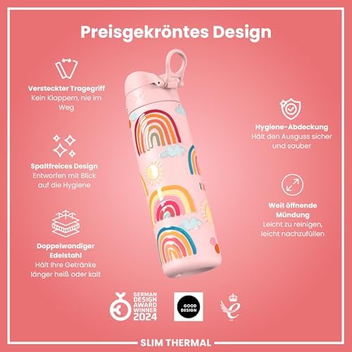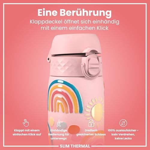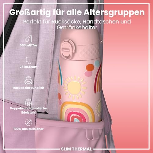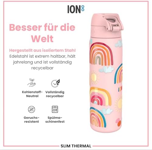 ion8 Trinkflasche 500 ml – Auslaufsicher, Einhandöffnung, BPA-frei, Ideal für Sport & Reisen, Regenbogen-Design