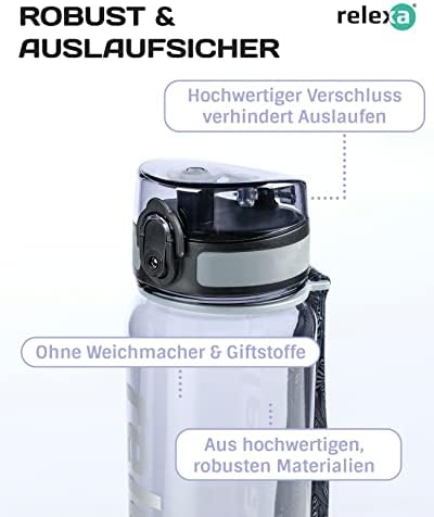 Ob im Büro, beim Sport oder unterwegs, mit unserer Trinkflasche bist du bestens ausgestattet. Der auslaufsichere Verschluss sorgt dafür, dass du dir keine Sorgen um undichte Stellen machen musst, egal wo du bist. Das hochwertige, robuste Material garantiert zudem eine lange Lebensdauer. Mit der handlichen Größe und dem praktischen Tragegurt lässt sich die Flasche mühelos transportieren – ein idealer Begleiter für jeden Tag.