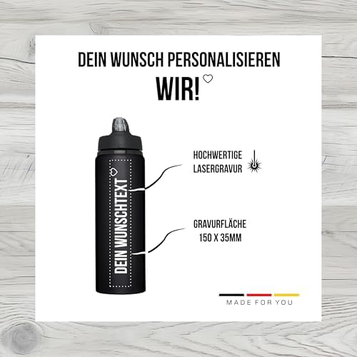 Die präzise Schweizer Lasergravur macht die FITZ Trinkflasche einzigartig. Ob Namen, Logos, Sprüche oder Motive – diese individuelle Gestaltung ist dauerhaft, abriebfest und verleiht der Flasche eine edle Note.